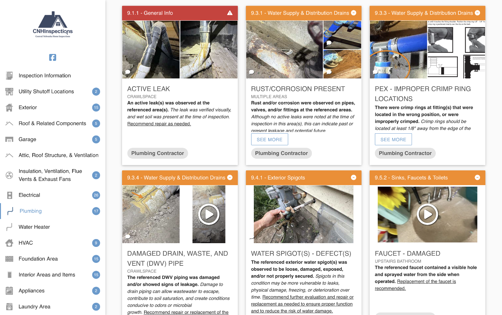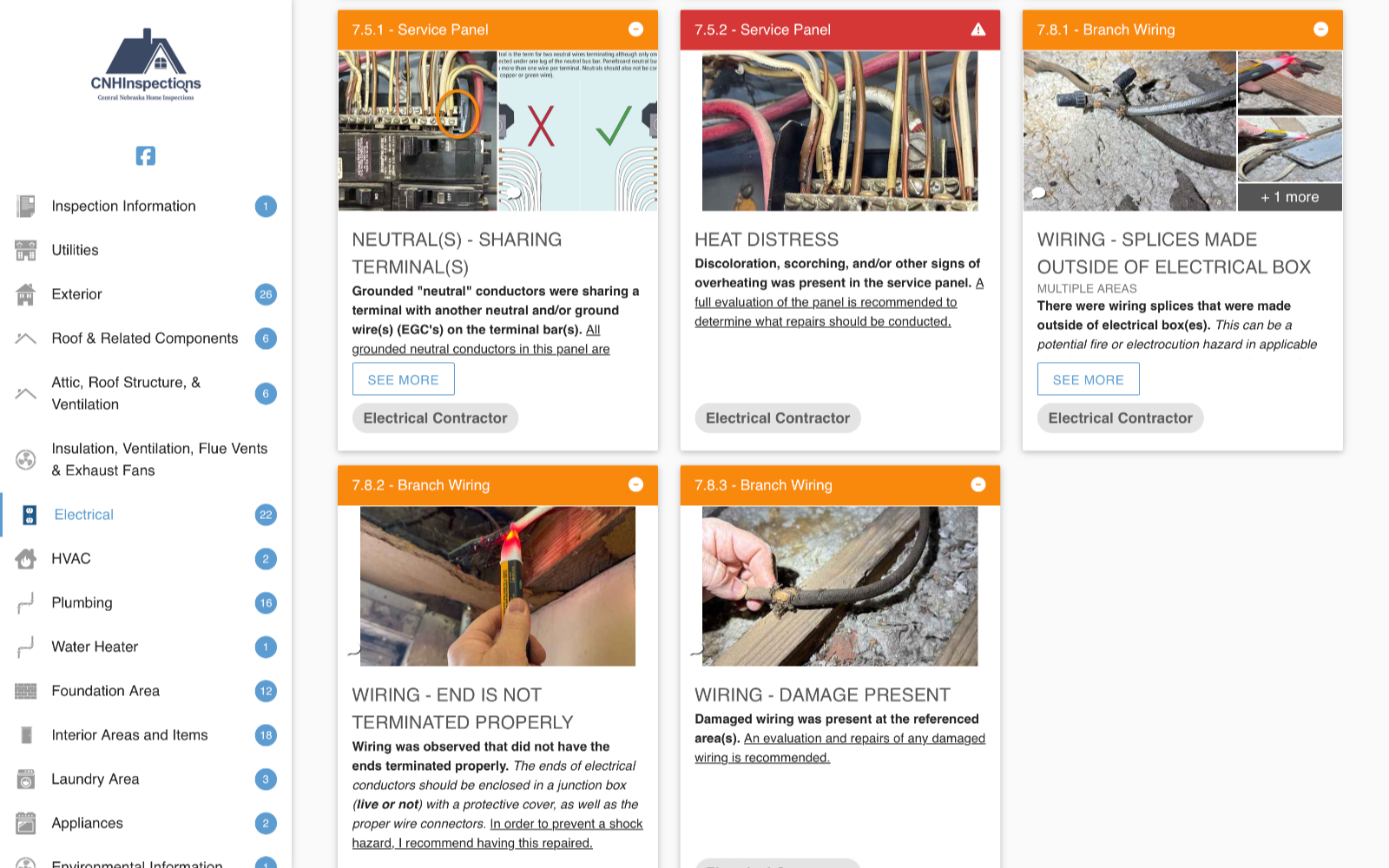 At CNHInspections, we use industry-leading Spectora software and have carefully built a custom inspection template to deliver clear, organized, and easy-to-understand reports. All defects and safety concerns are categorized and summarized for quick review.
